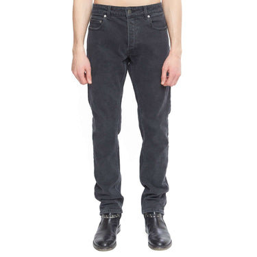 Slim fit jeans in black denim, 5 pockets, hidden front button closure. Metallic logo detail on the back. 100% cotton. Made in Italy.