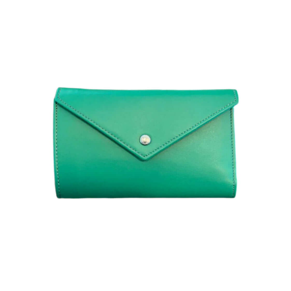 Women's Leather Wallet in Green, crafted from genuine leather.