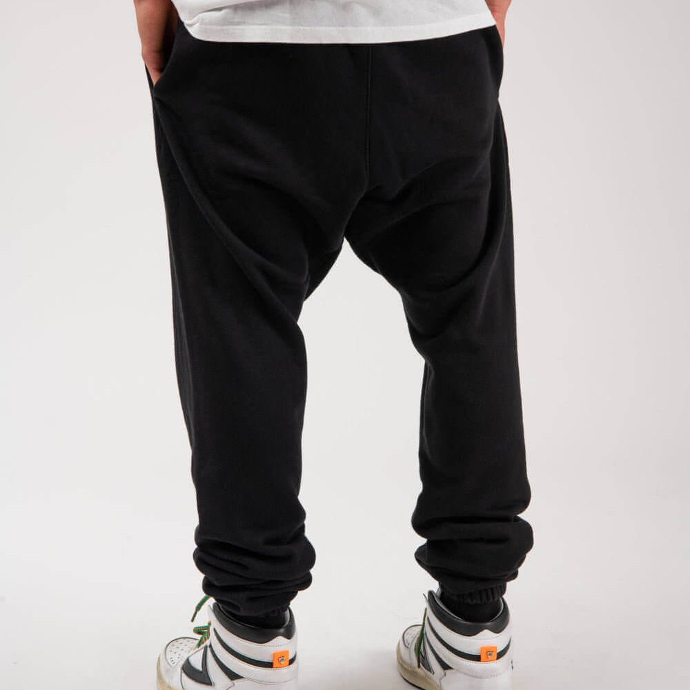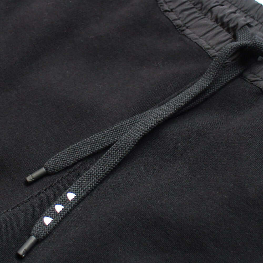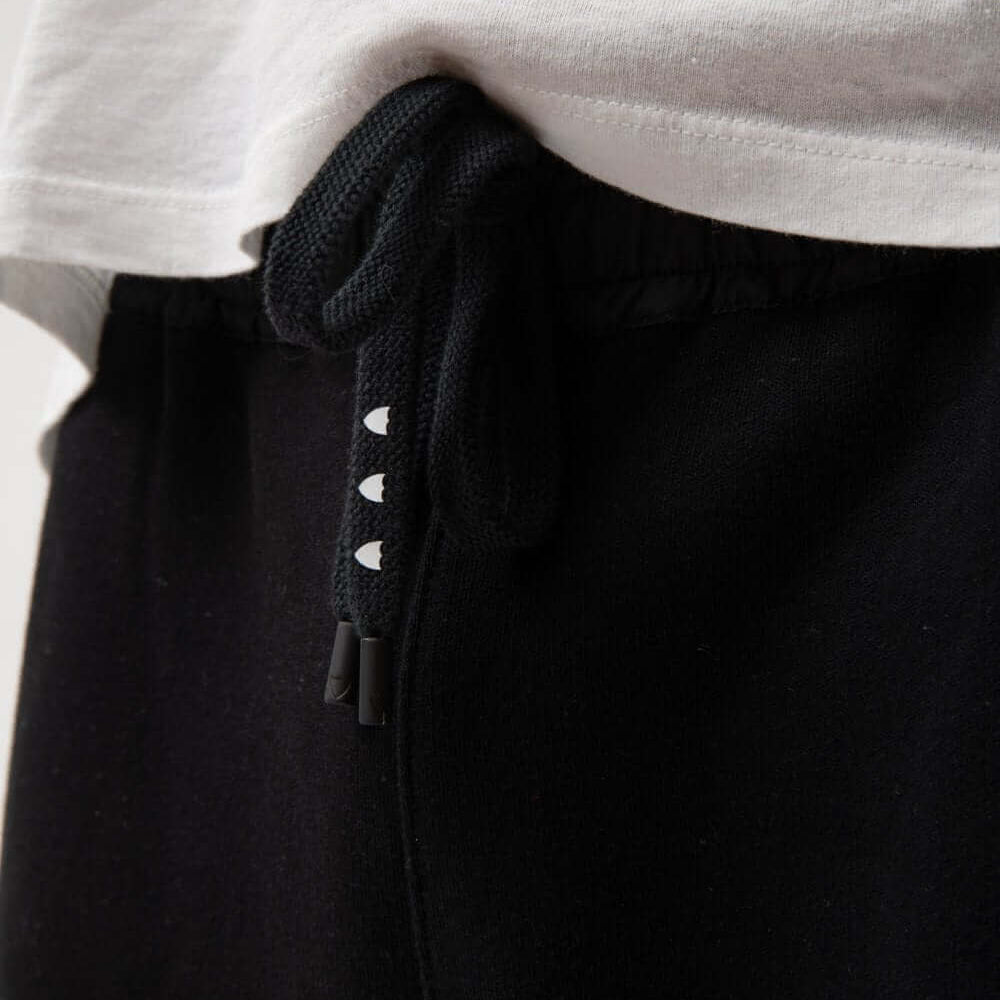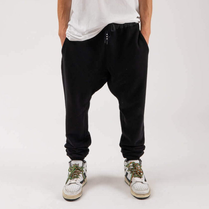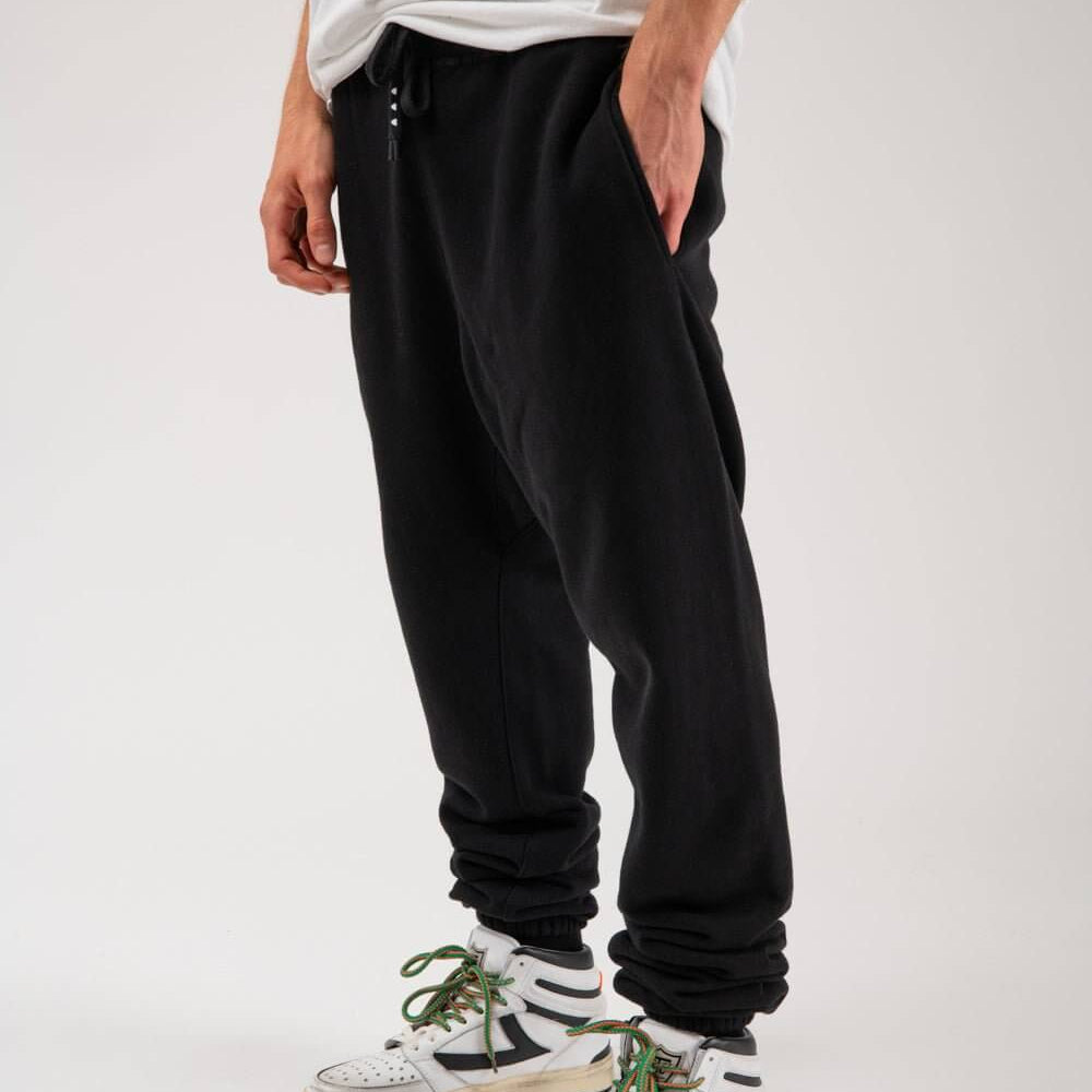 Black basic pants. Elastic waistband with drawstring. Side pockets.