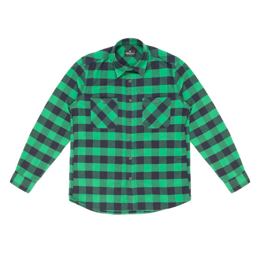 Check cotton flannel shirt. Regular fit. Logo print on the back. Front button closure. Two brest pockets.