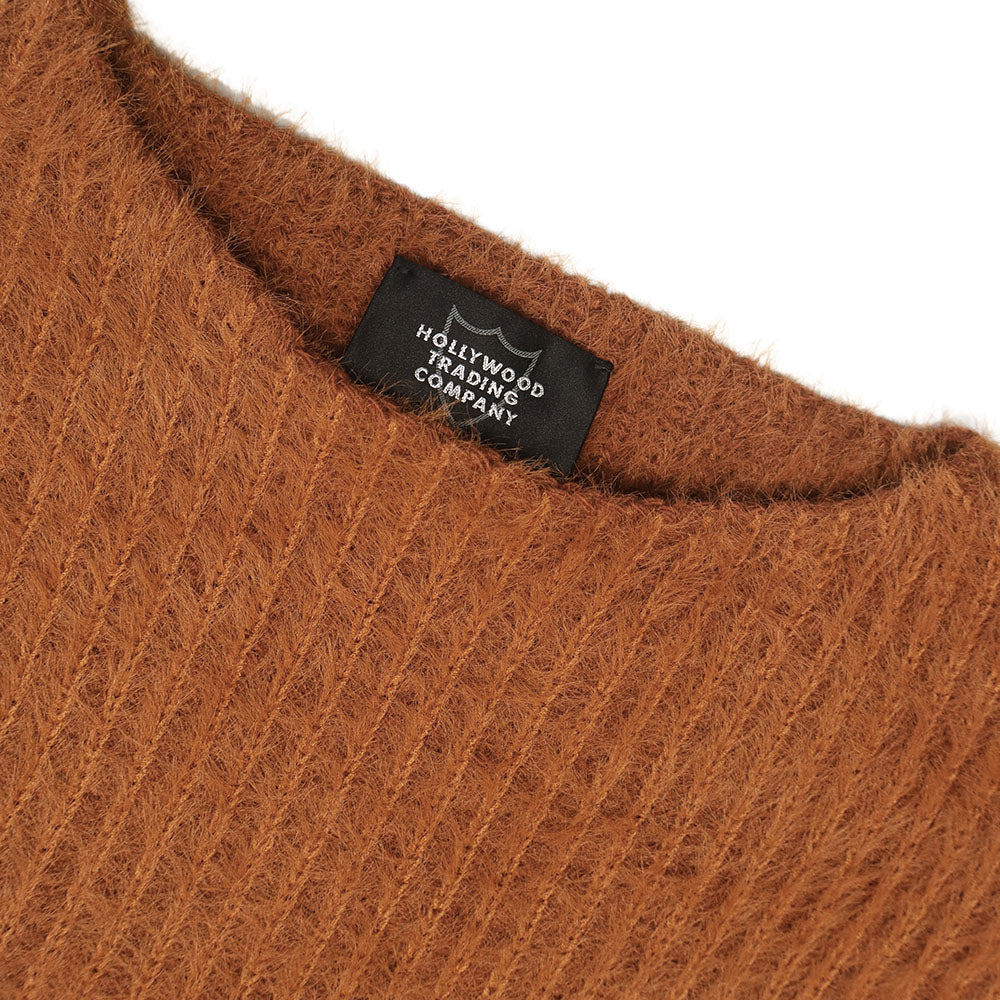 Rust Ribbed sweater featuring a textured knit design and a boxy fit.