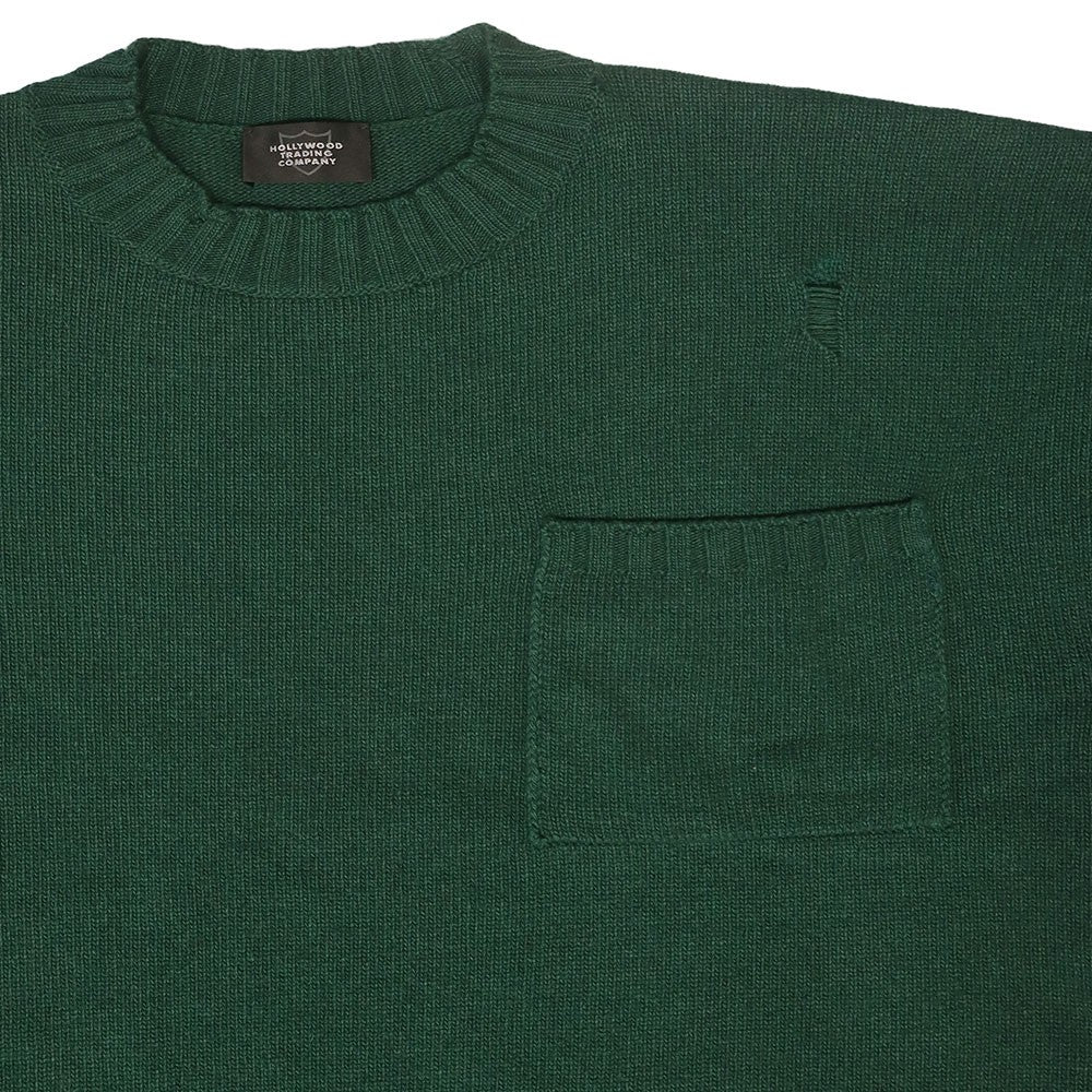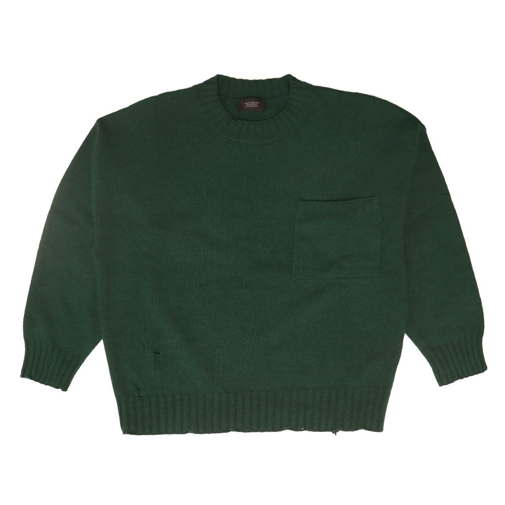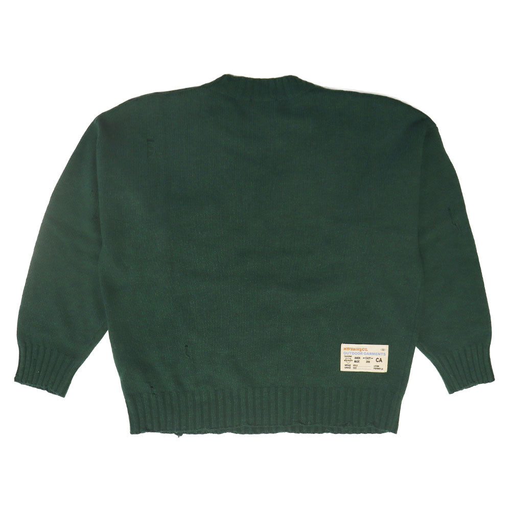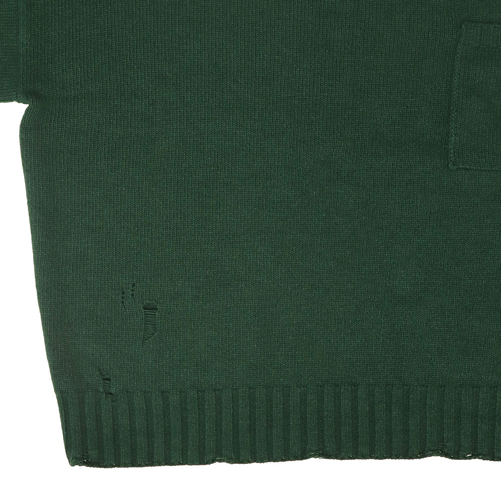 Forest Green Round Neck Sweater for men with a distressed effect and a front pocket.