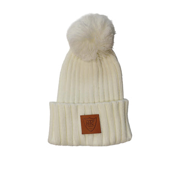 Cozy Winter Beanie in White featuring the HTC logo on the front.