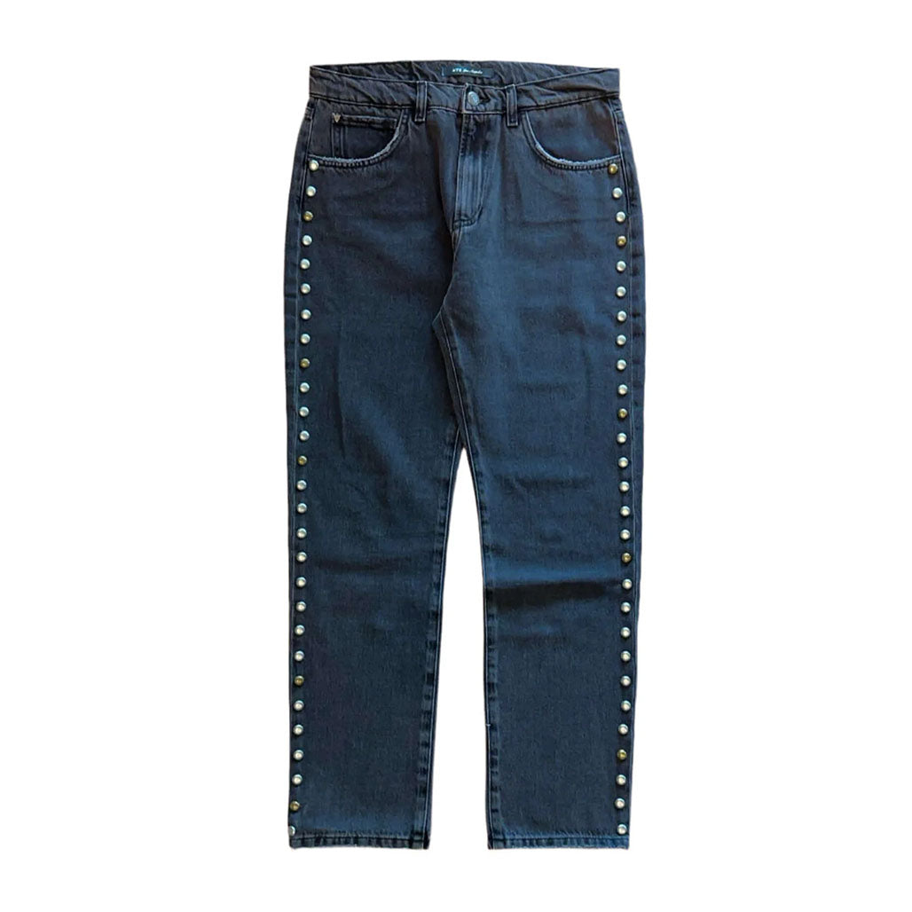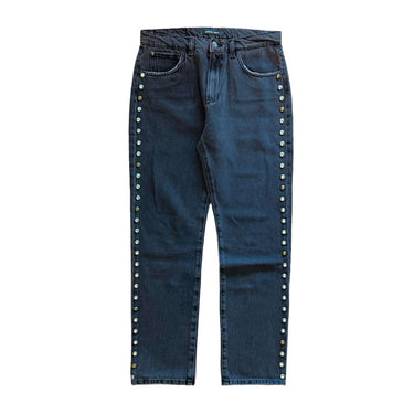 High-quality denim with decorative studded detailing along the sides.