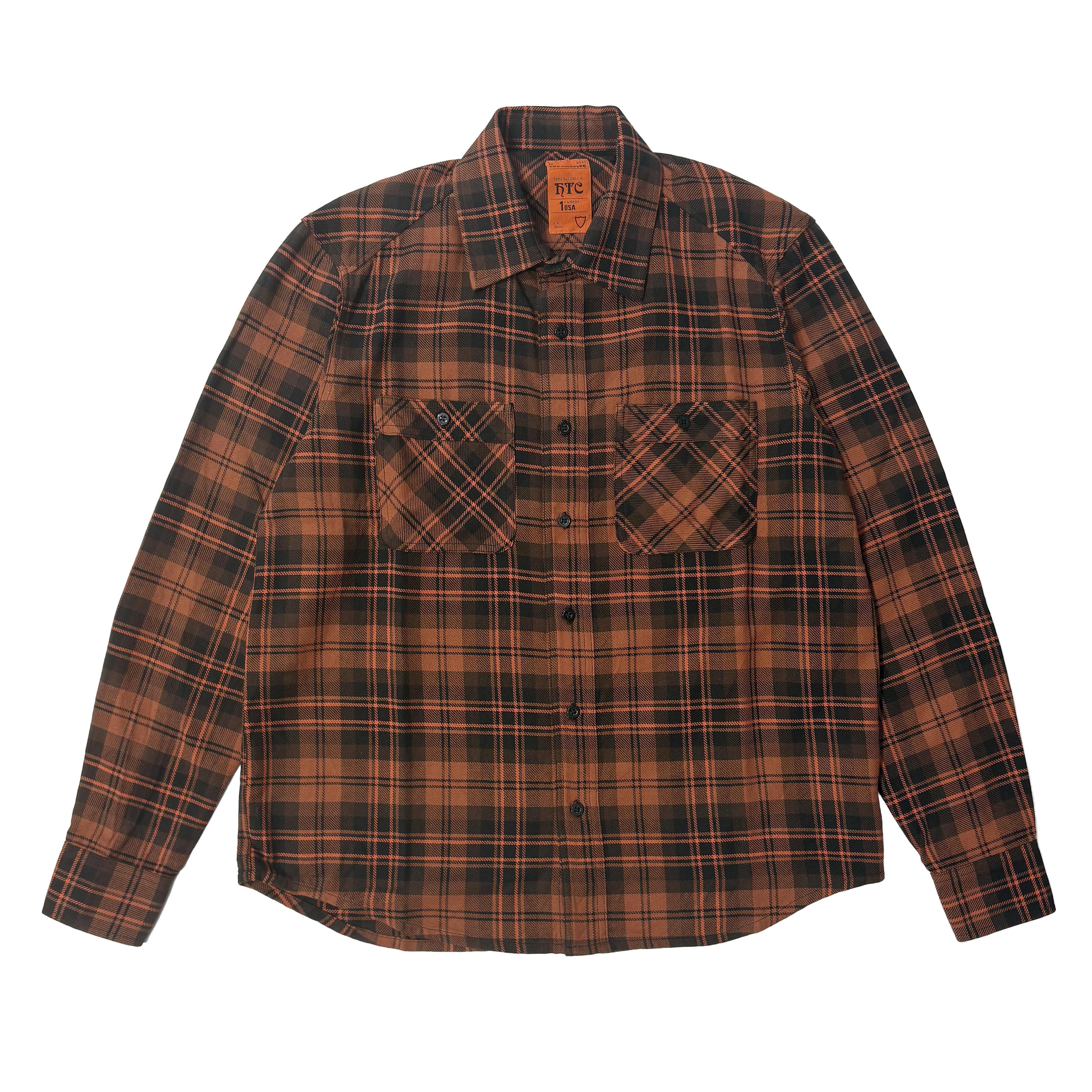Check Shirt in Black & Orange, featuring a regular fit, two front pockets, and a central button closure.