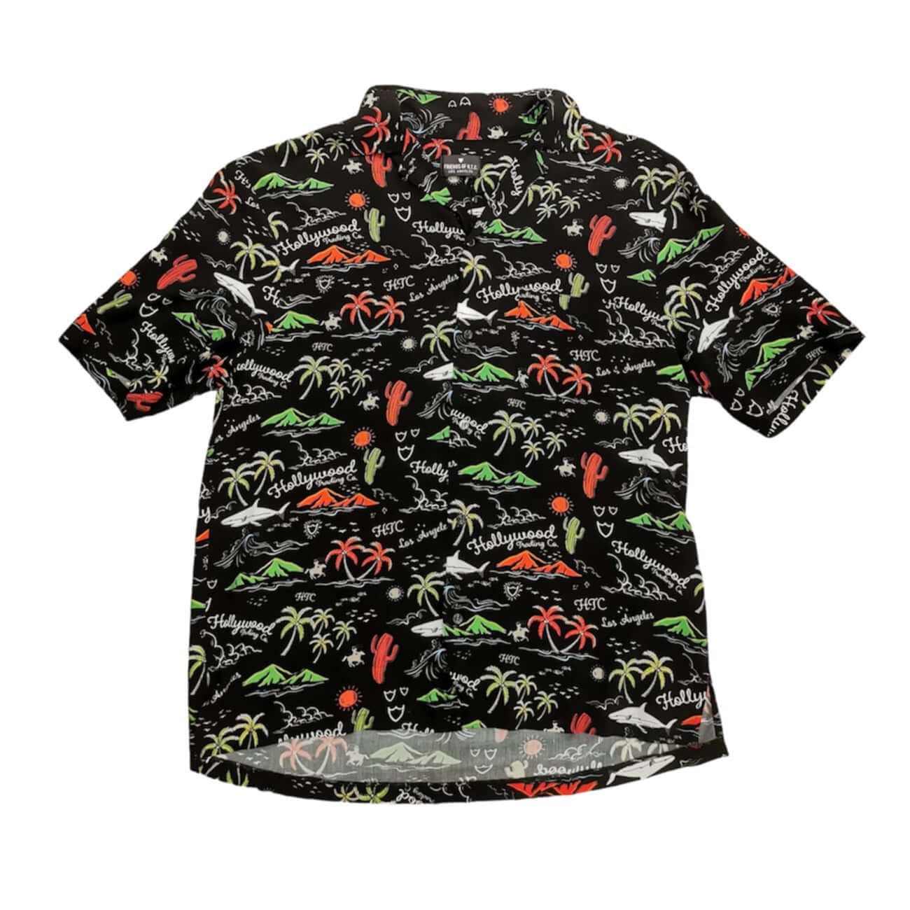 HTC Los Angeles Hawaiian Shirt in Navy Blue, featuring a relaxed fit.